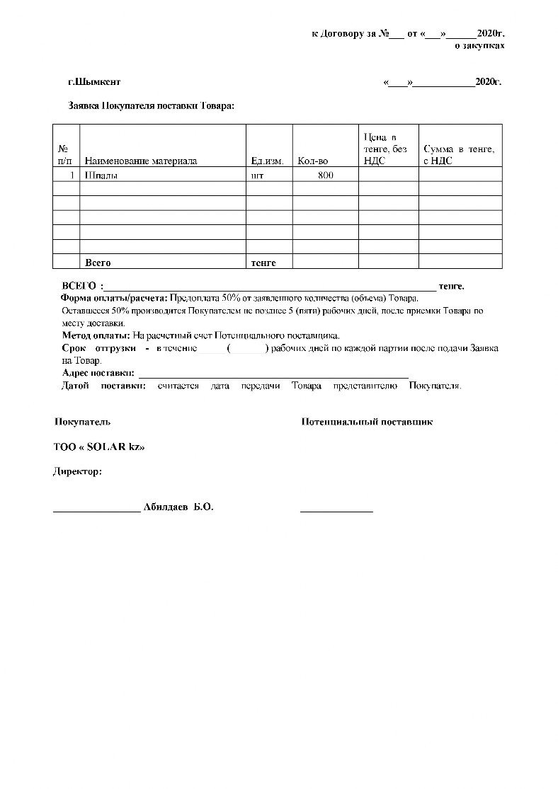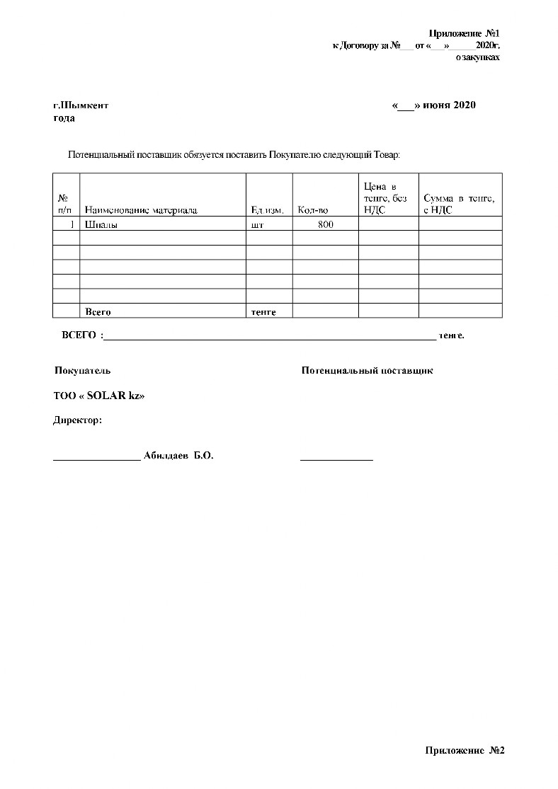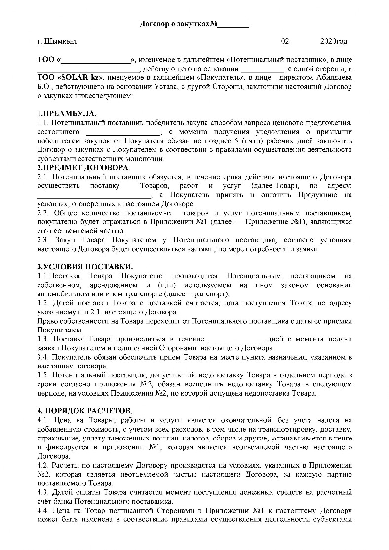Договор закупа по тендеру СОЛАР - SOLAR kz